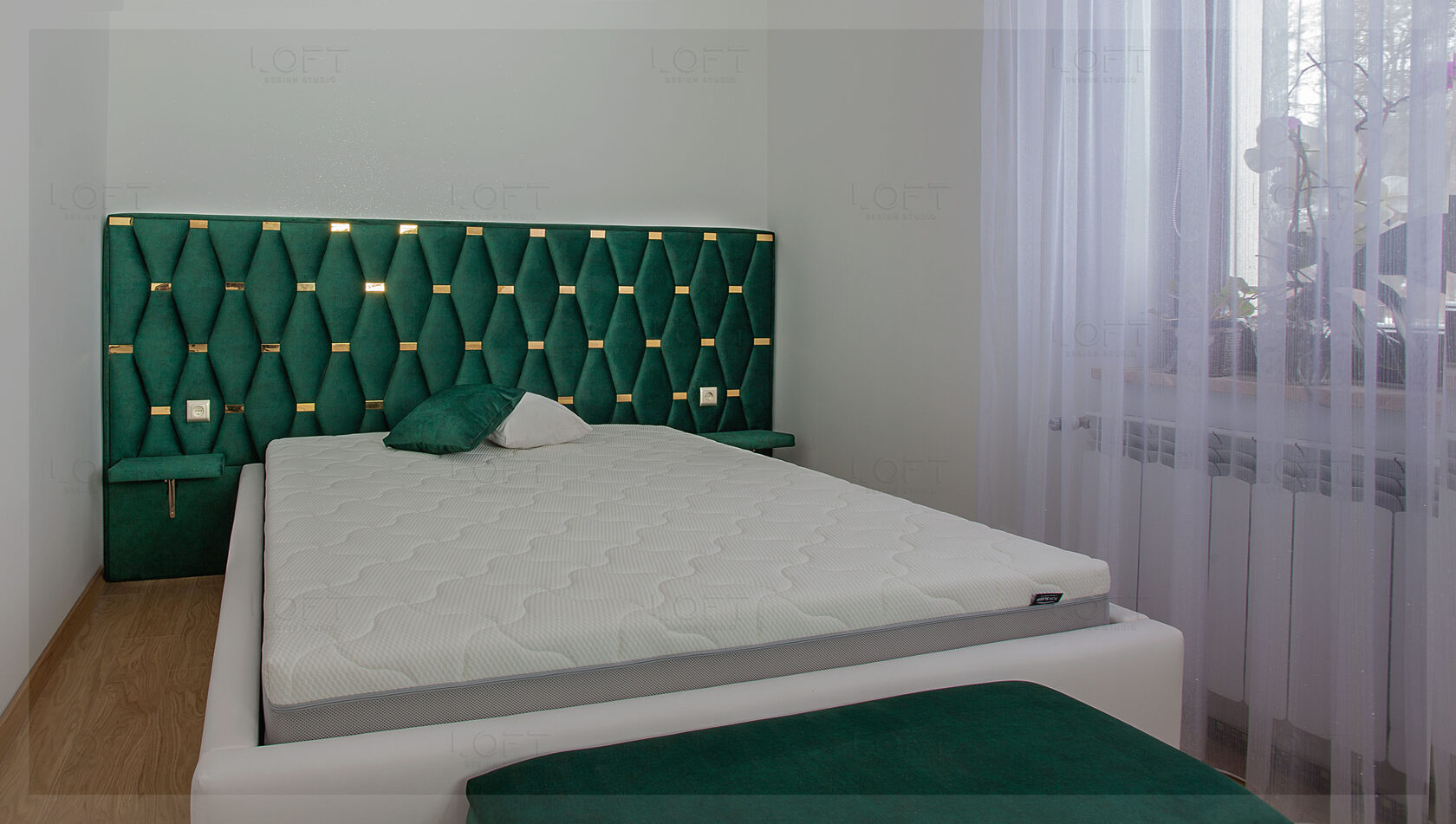 - z zagłówkiem standardowym albo ze ścianą tapicerowaną na wysokość lub szerokość pokoju