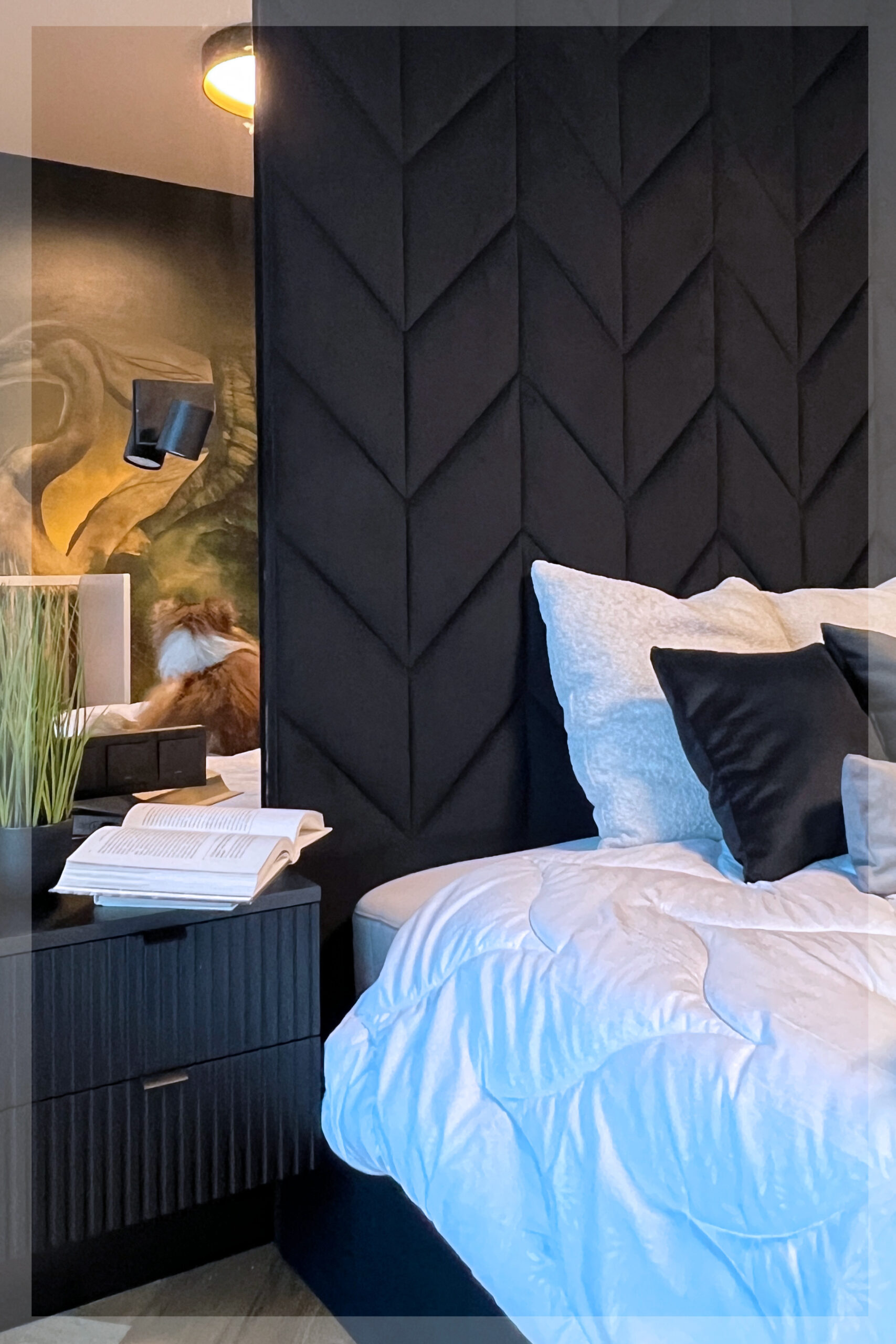 • z zagłówkiem standardowym albo ze ścianą tapicerowaną na wysokość lub szerokość pokoju