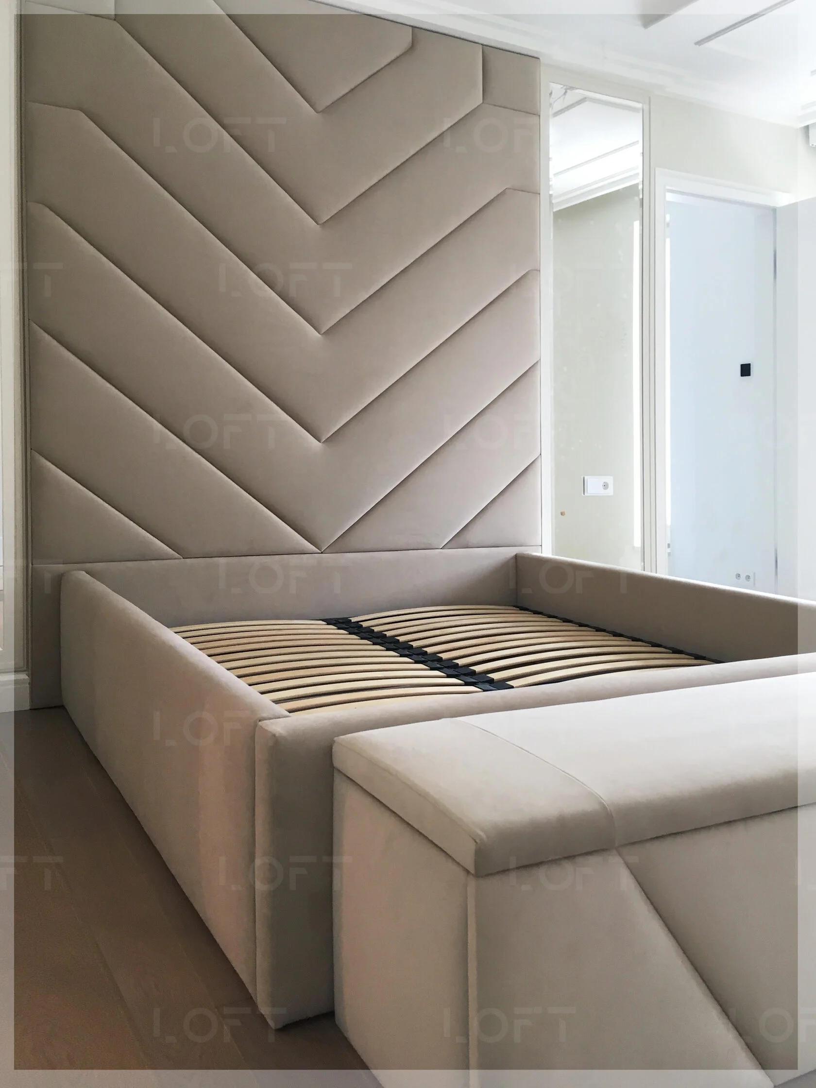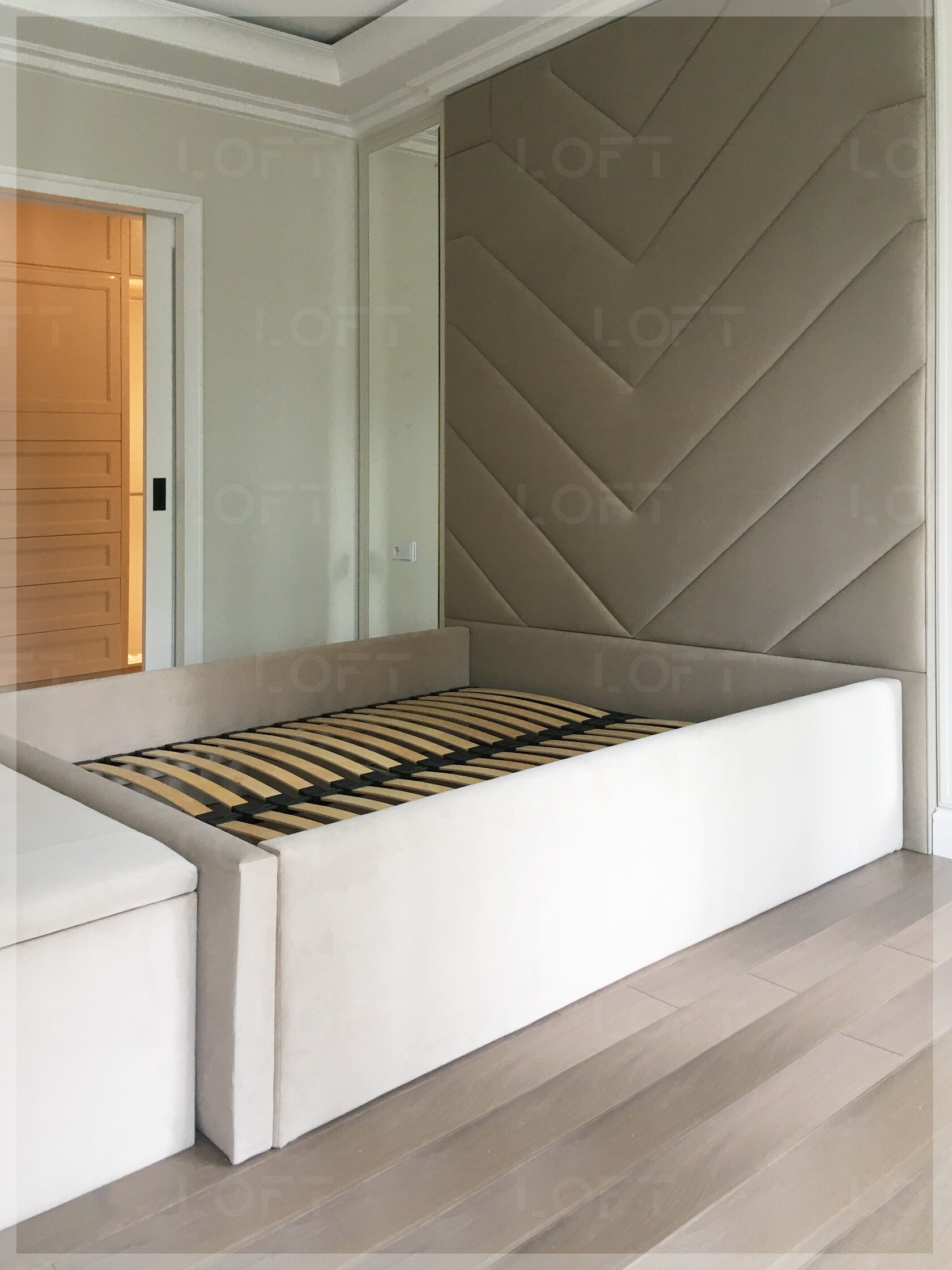 • z zagłówkiem standardowym albo ze ścianą tapicerowaną na wysokość lub szerokość pokoju