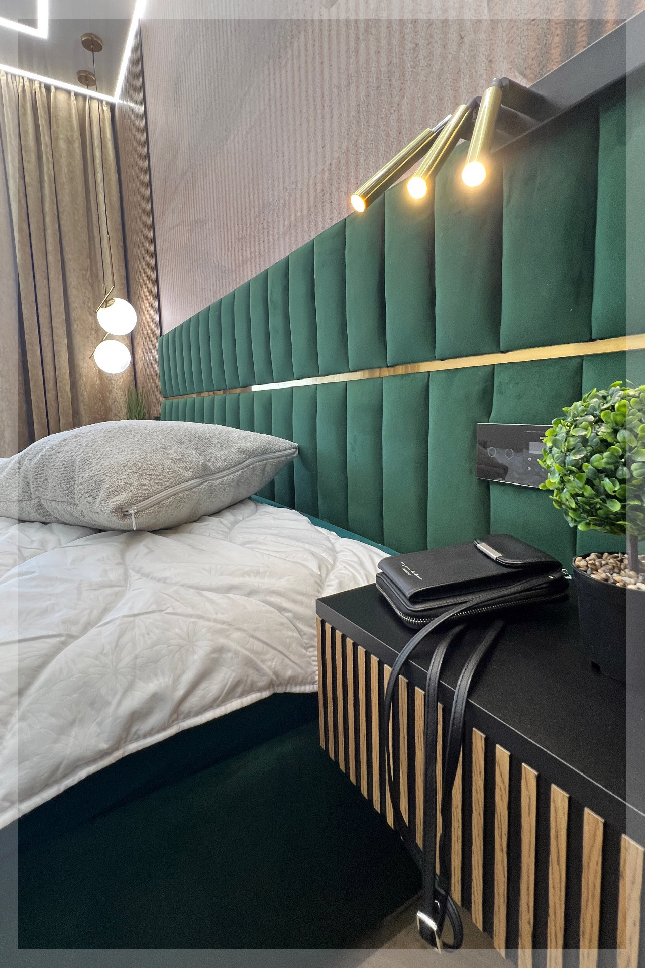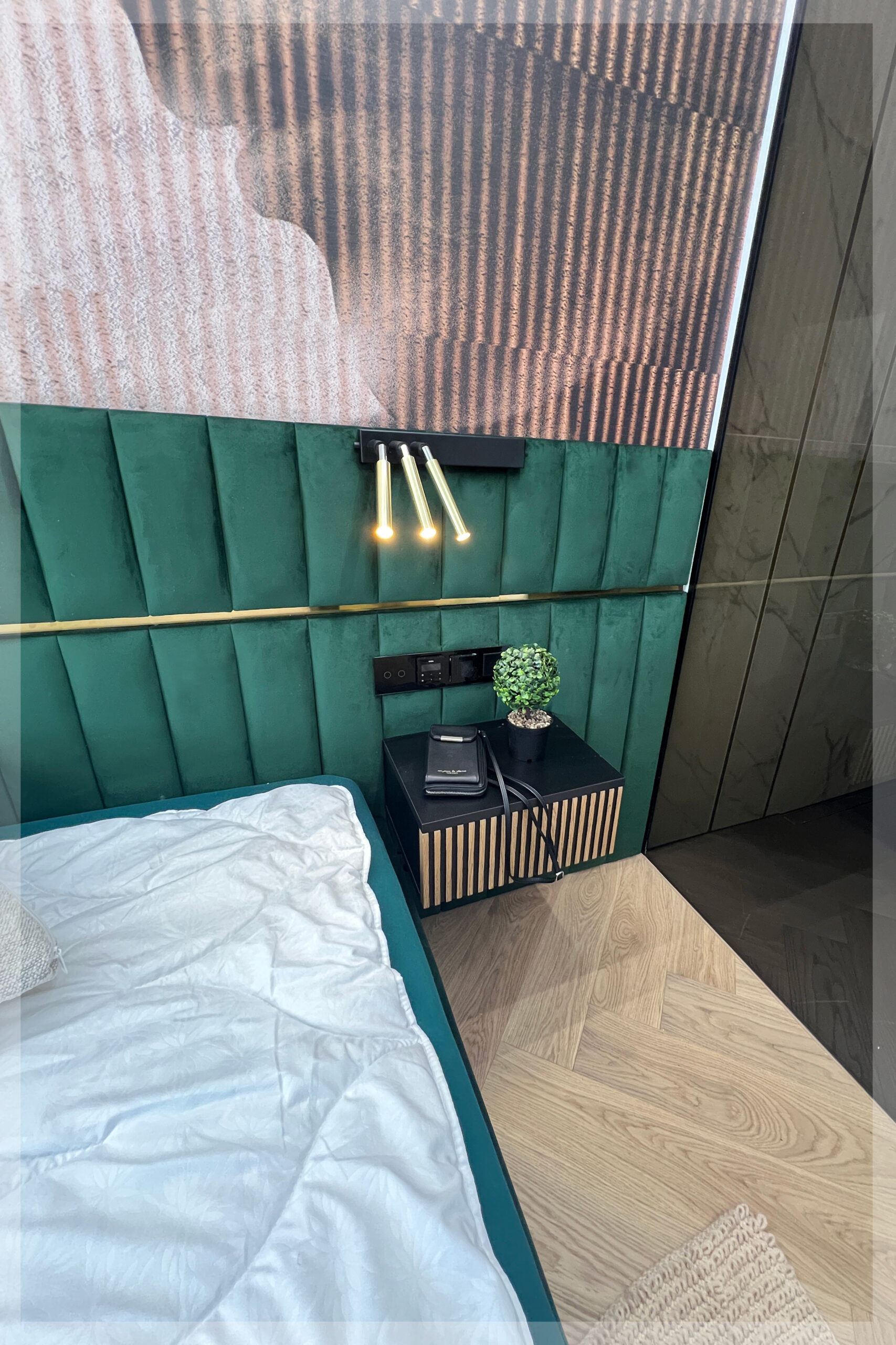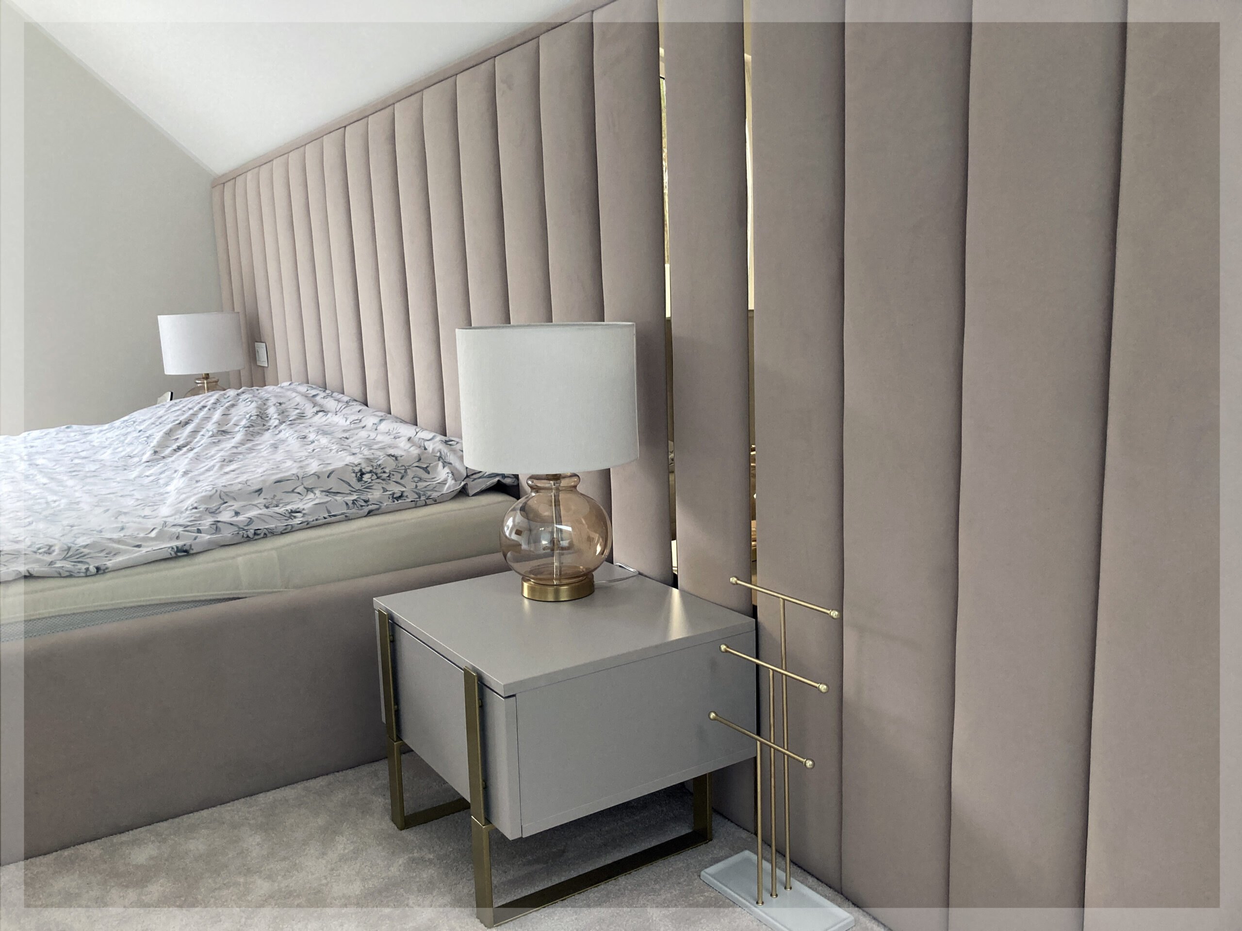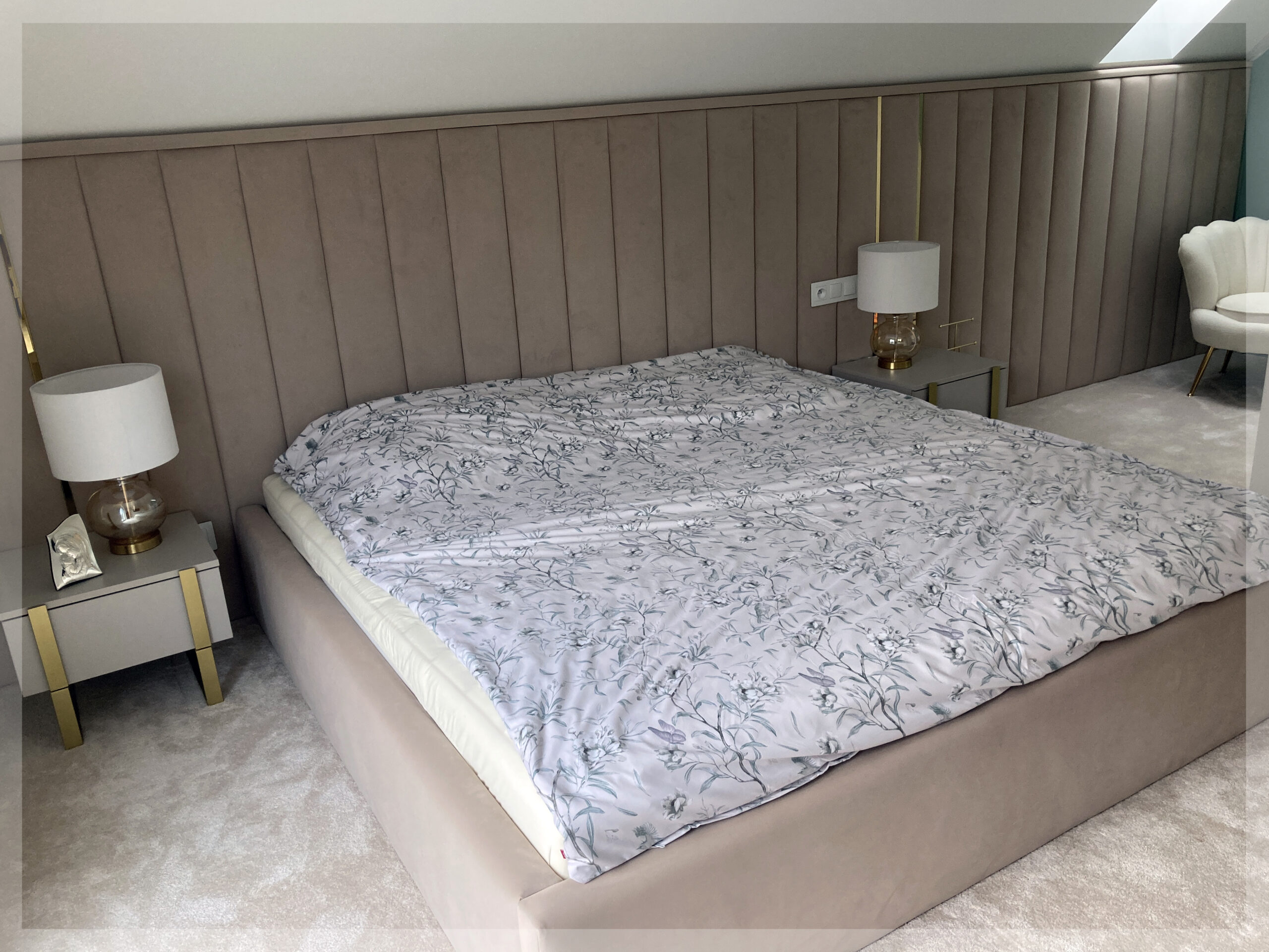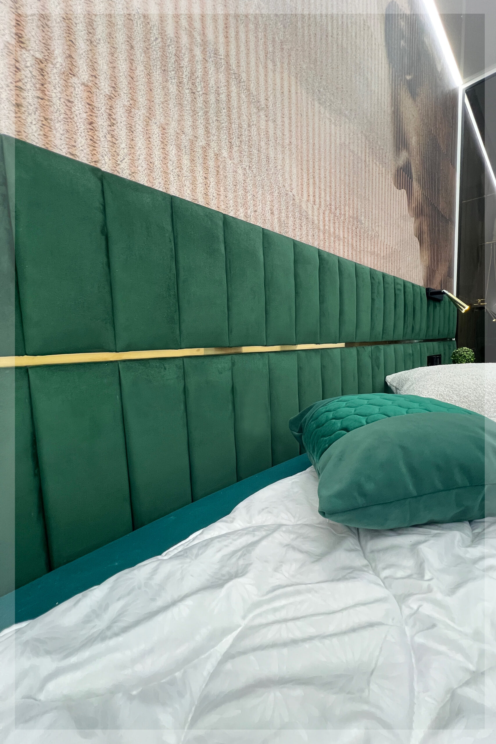 - z zagłówkiem standardowym albo ze ścianą tapicerowaną na wysokość lub szerokość pokoju