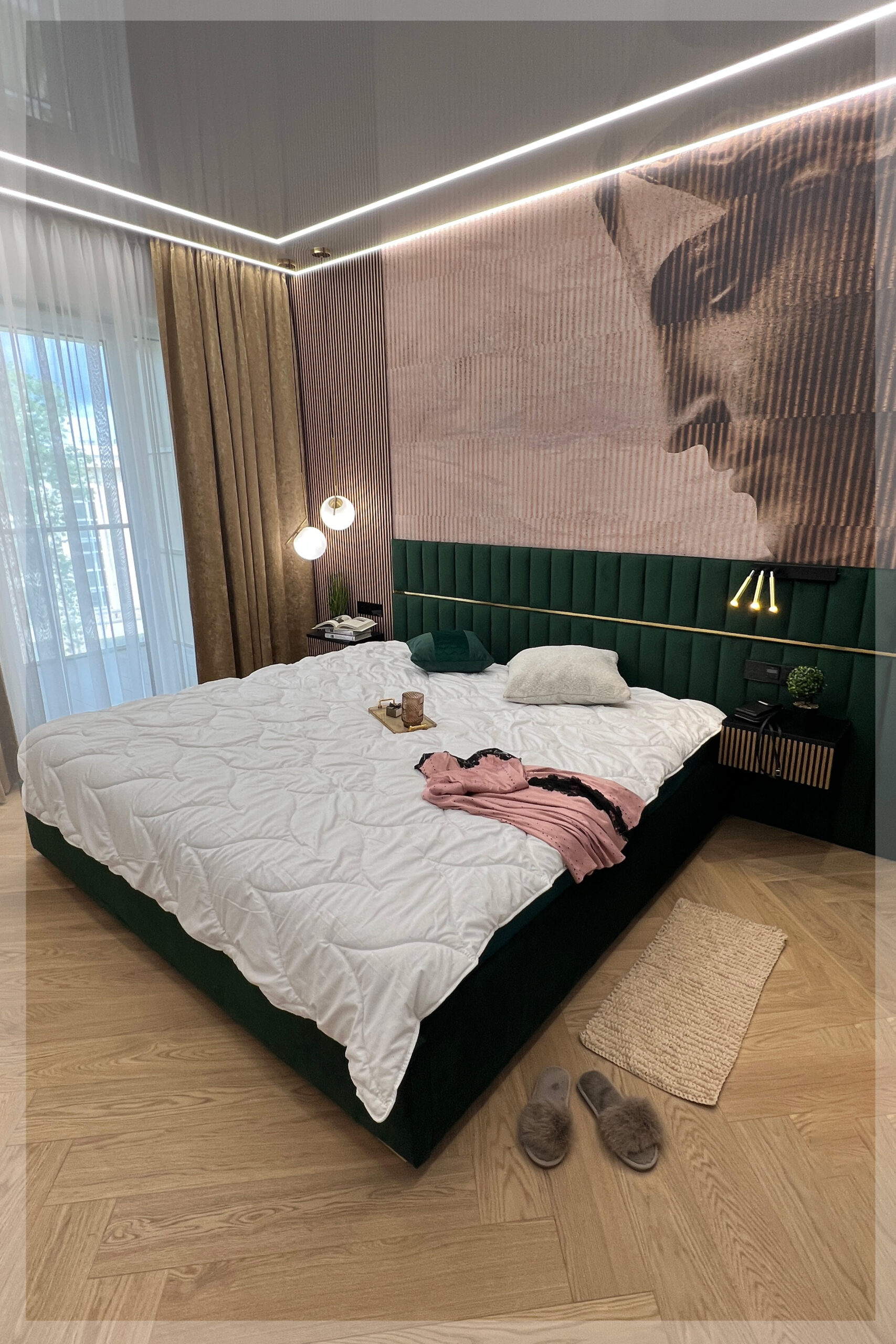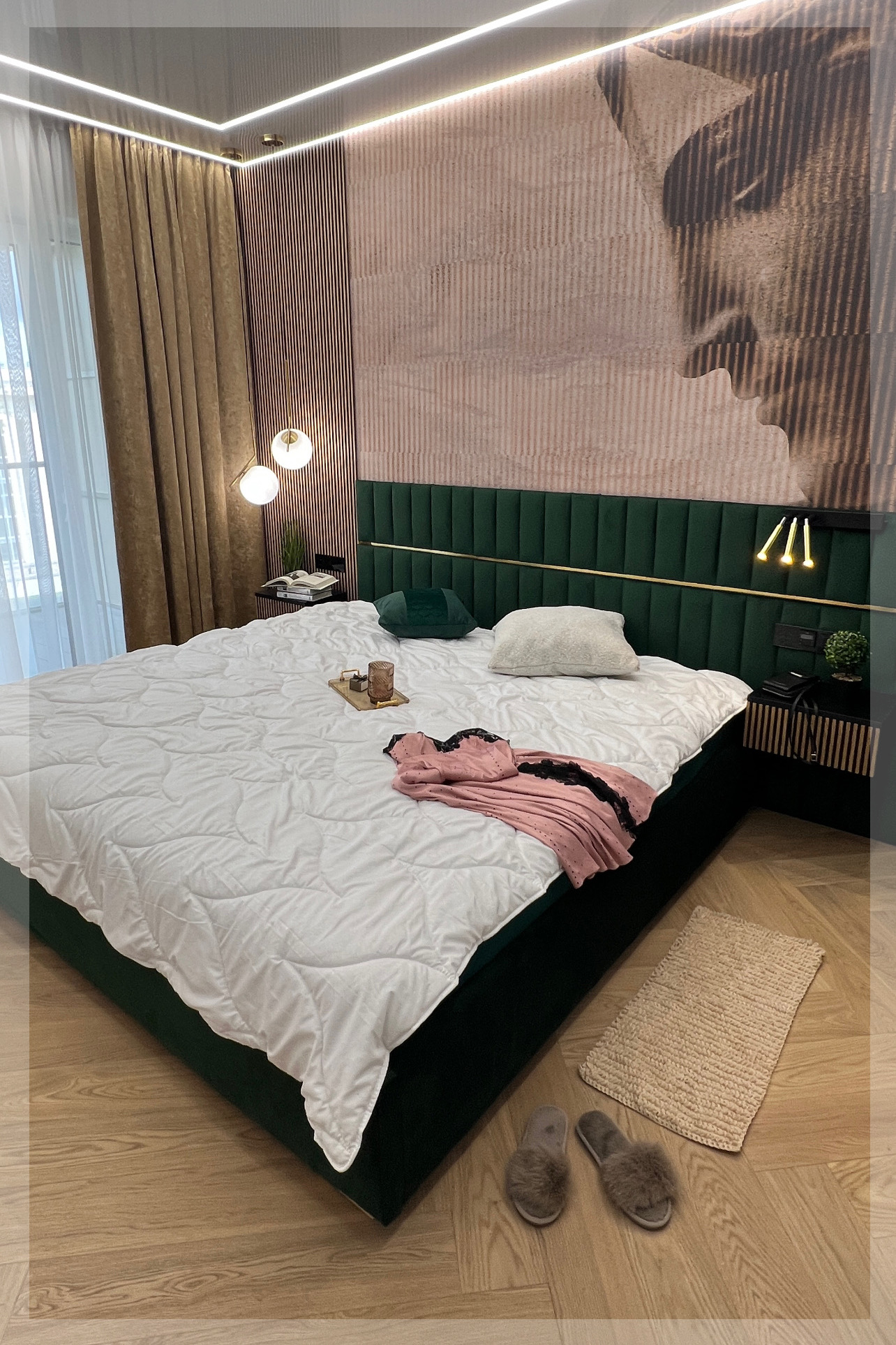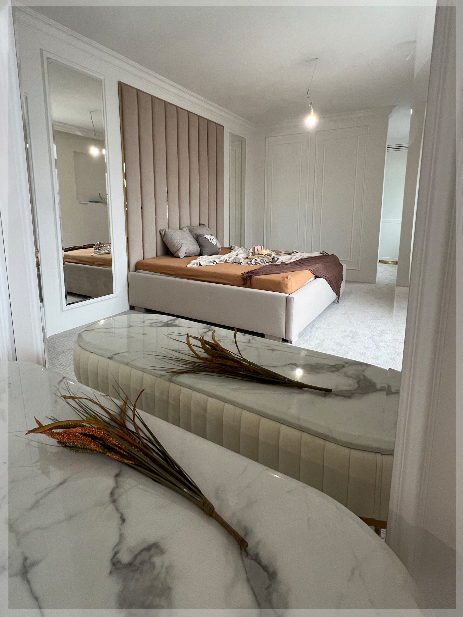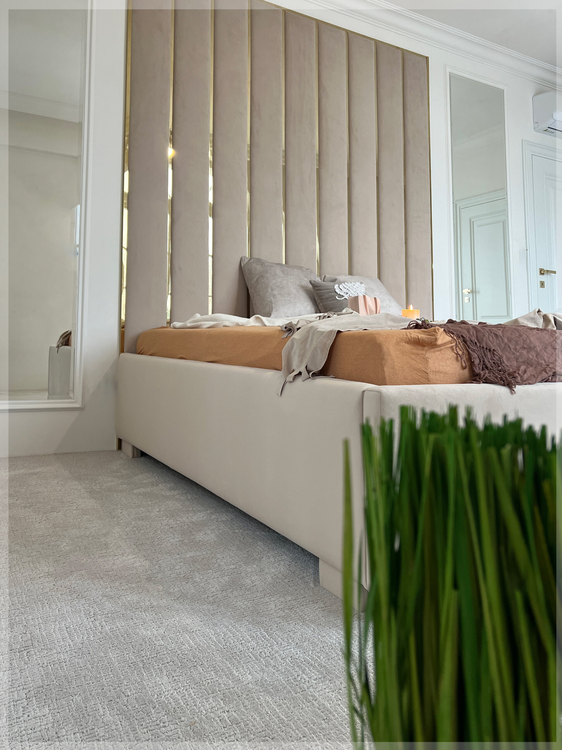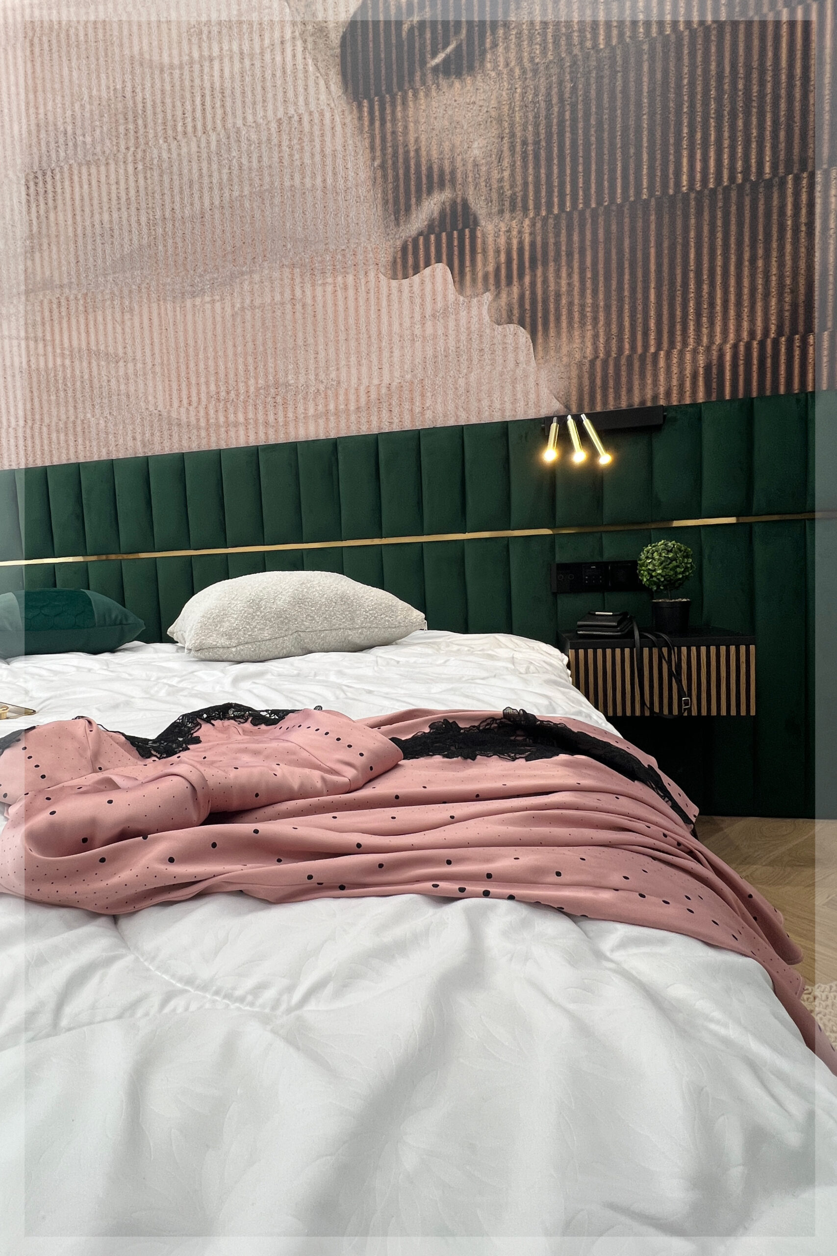 - z zagłówkiem standardowym albo ze ścianą tapicerowaną na wysokość lub szerokość pokoju