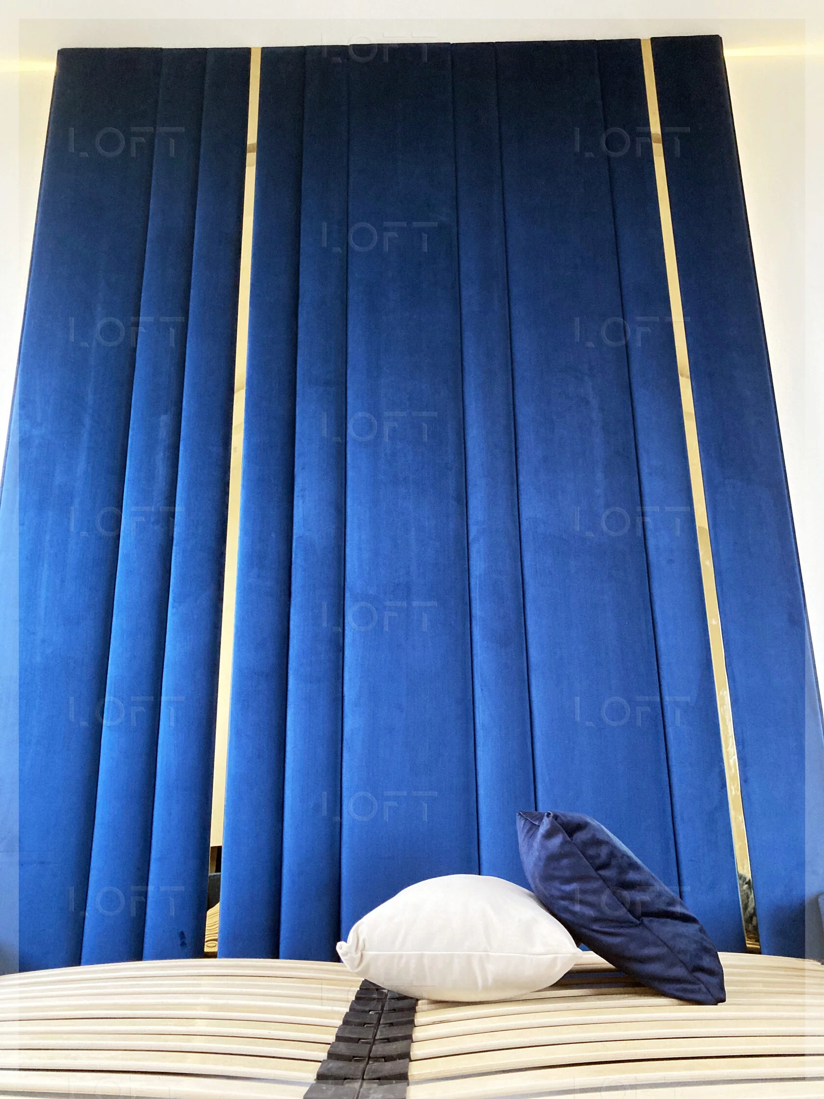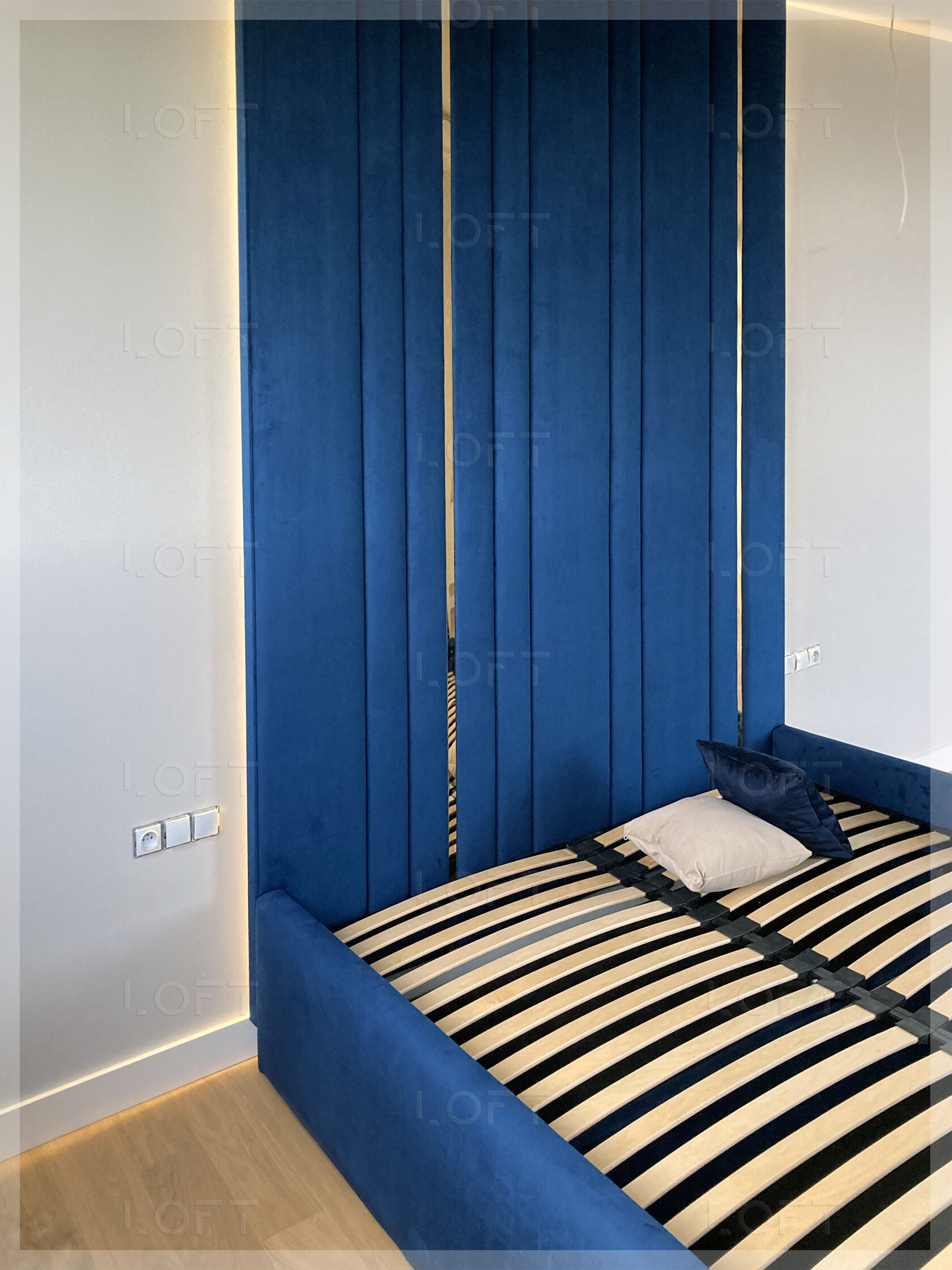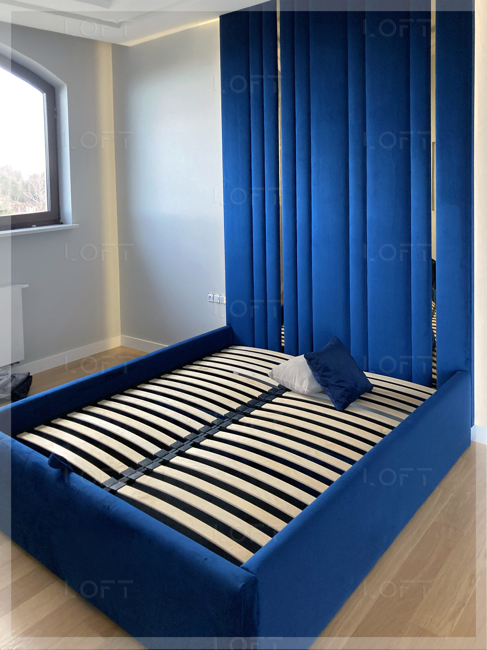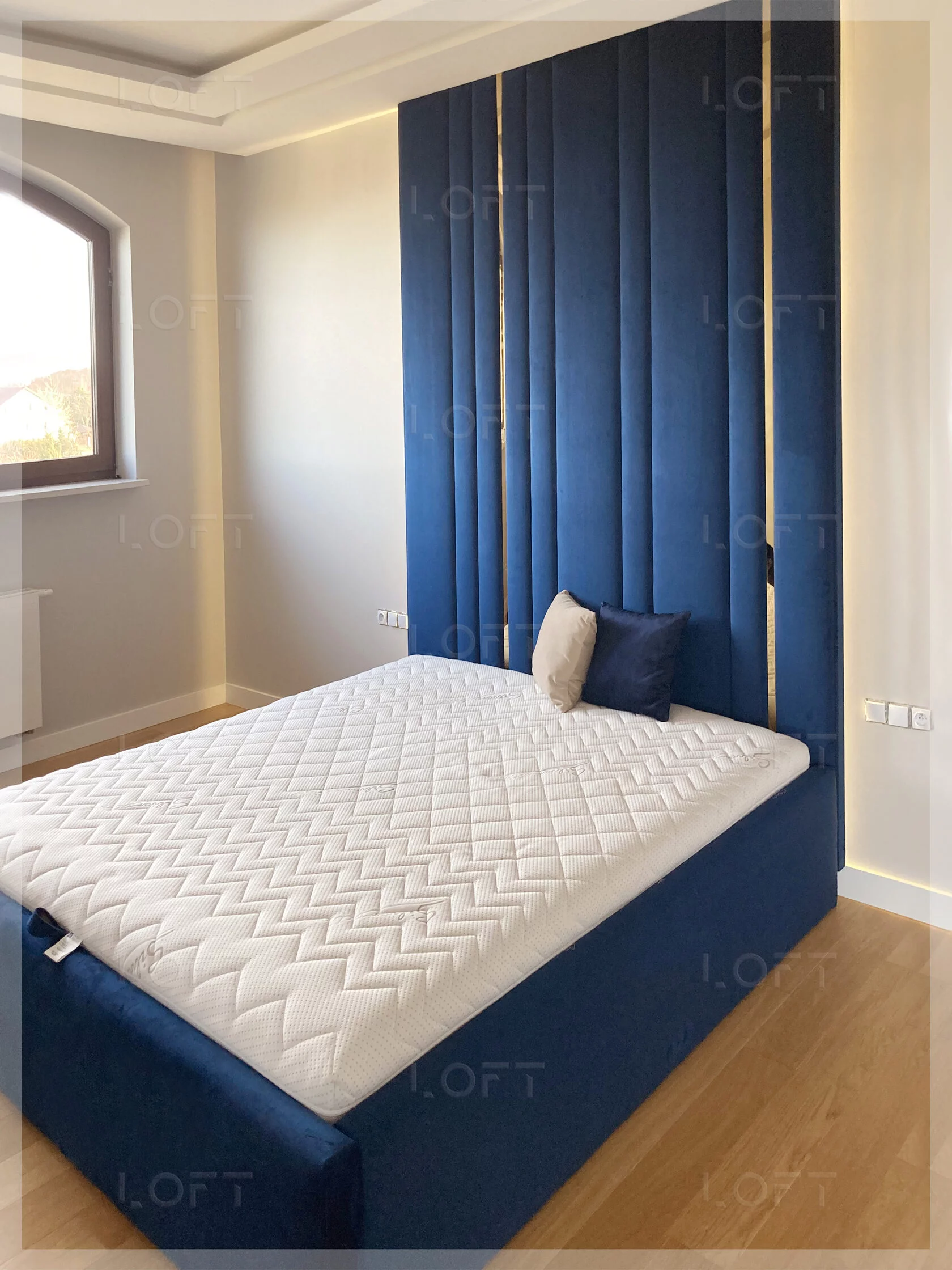 - z zagłówkiem standardowym albo ze ścianą tapicerowaną na wysokość lub szerokość pokoju