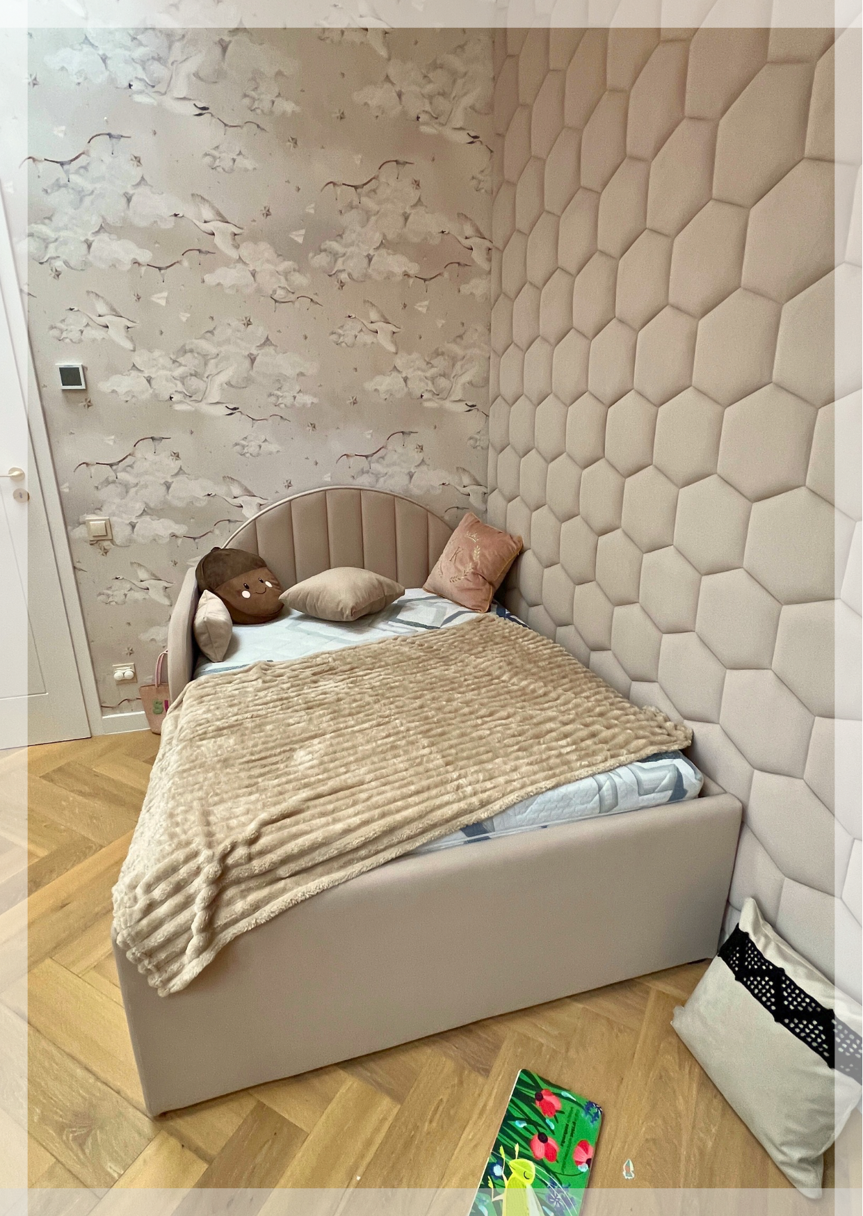 • z zagłówkiem standardowym albo ze ścianą tapicerowaną na wysokość lub szerokość pokoju