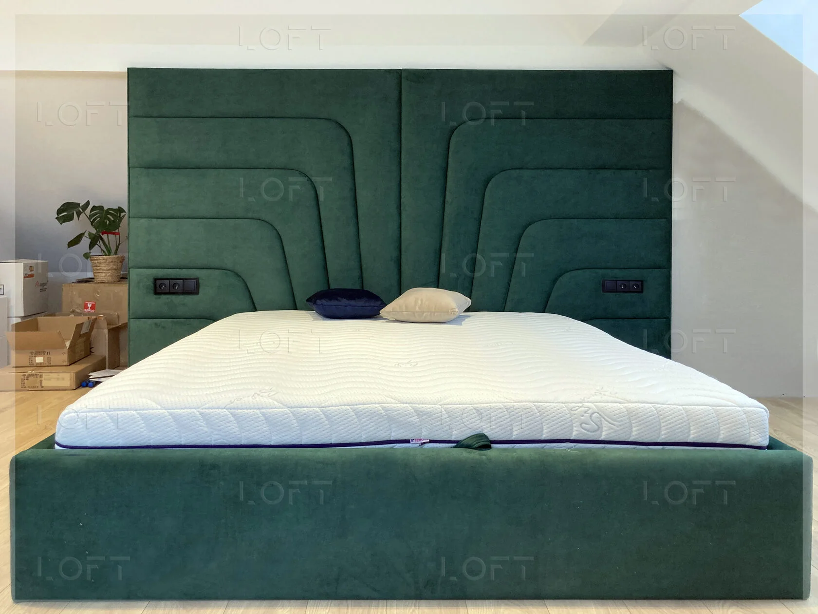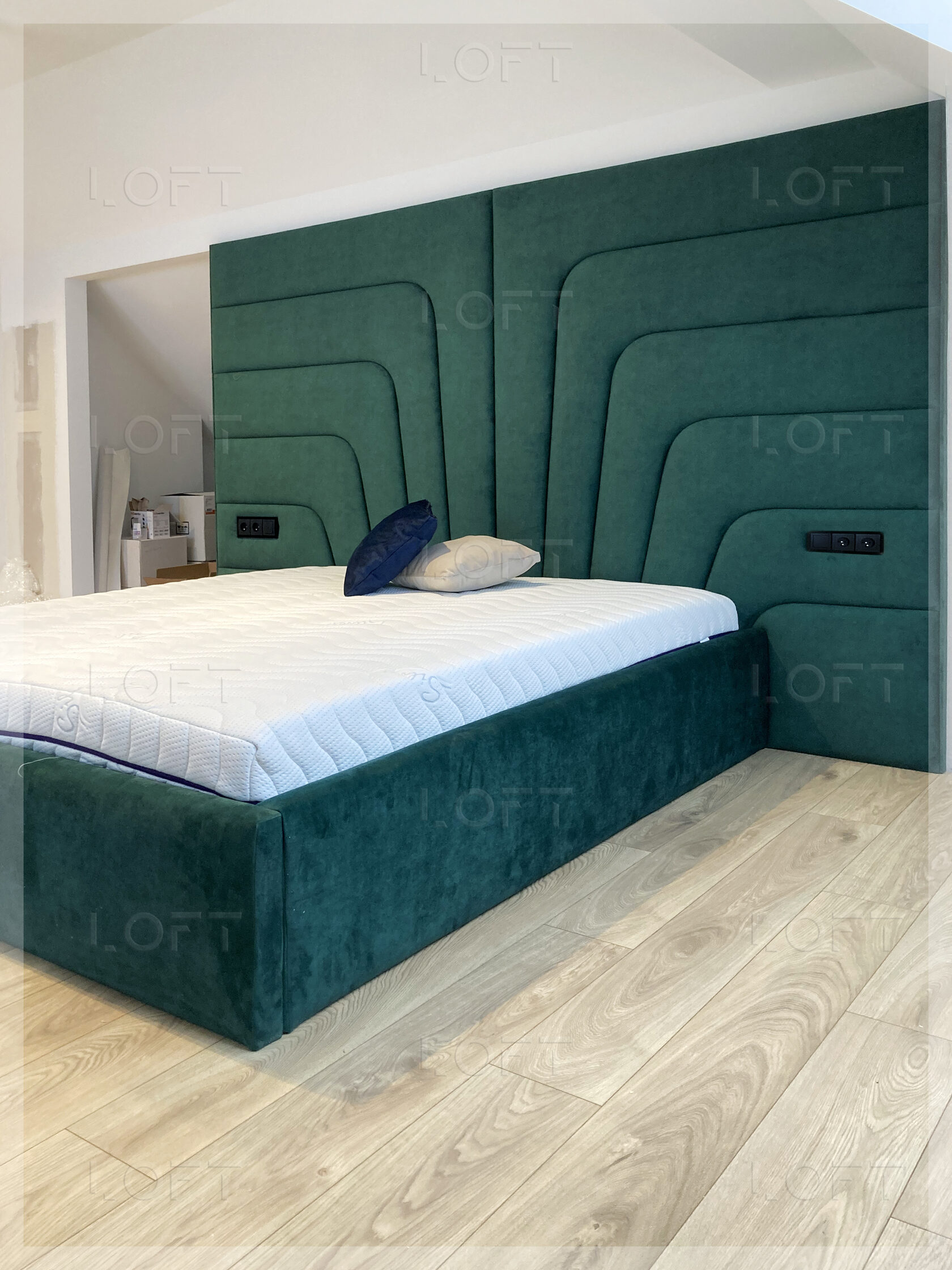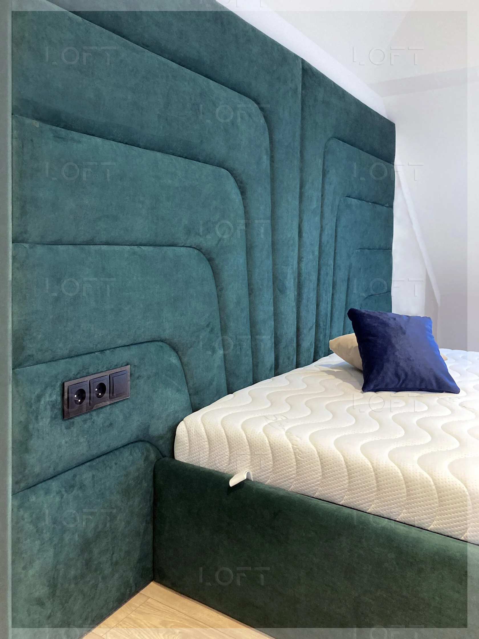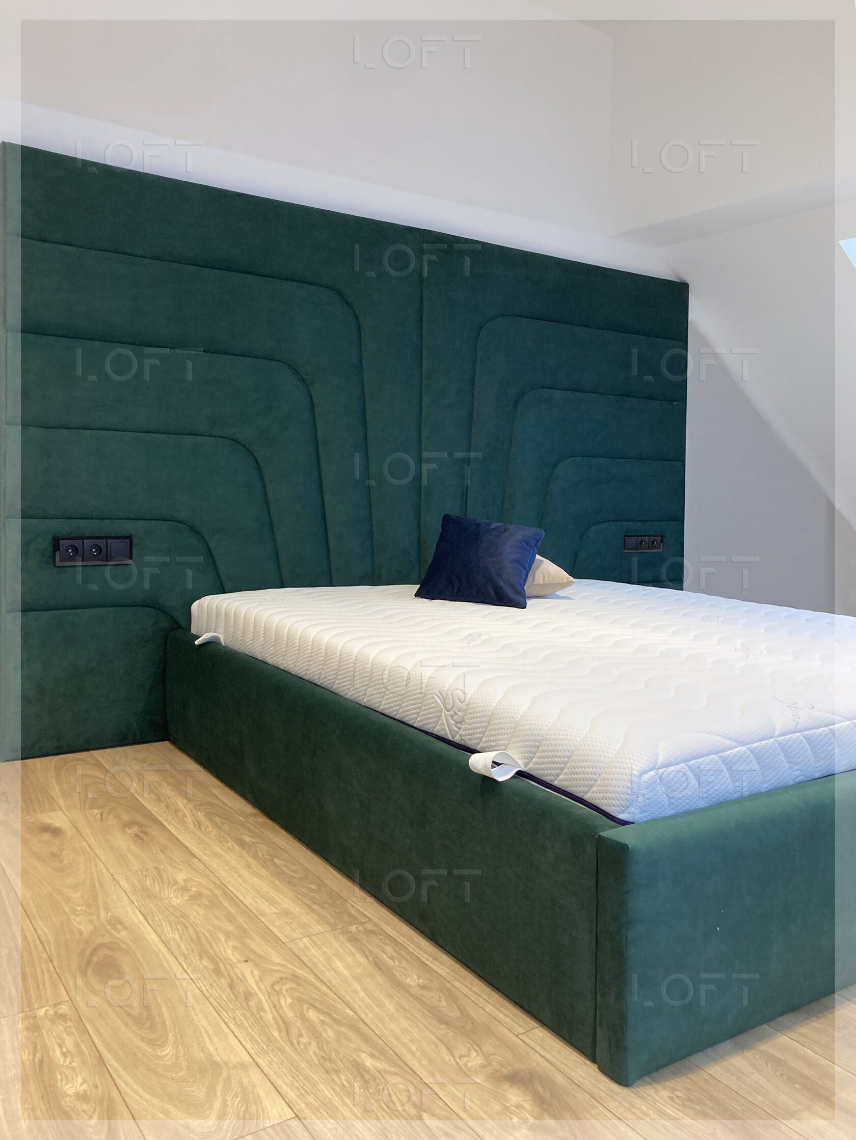 • z zagłówkiem standardowym albo ze ścianą tapicerowaną na wysokość lub szerokość pokoju