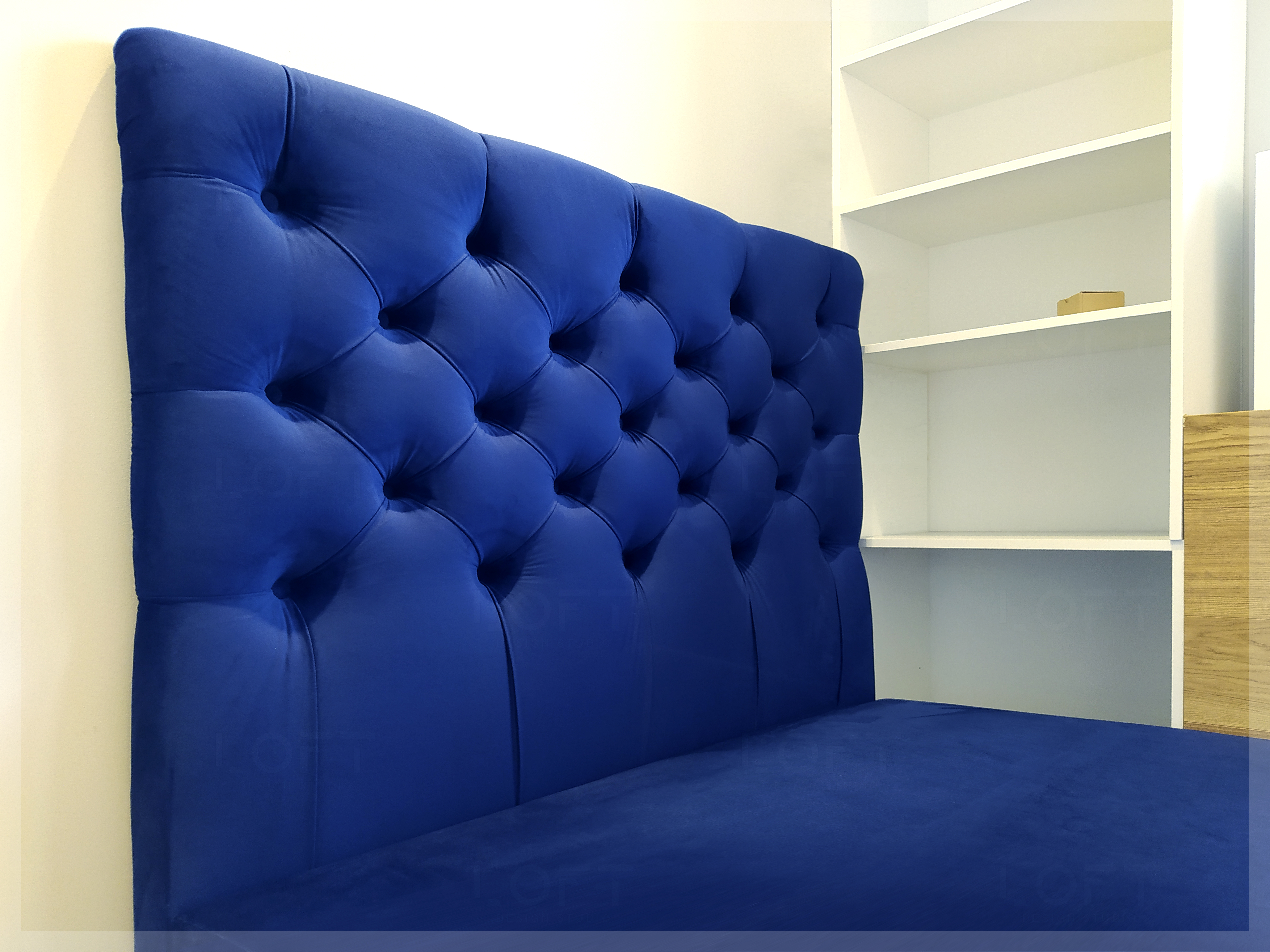 - z zagłówkiem standardowym albo ze ścianą tapicerowaną na wysokość lub szerokość pokoju