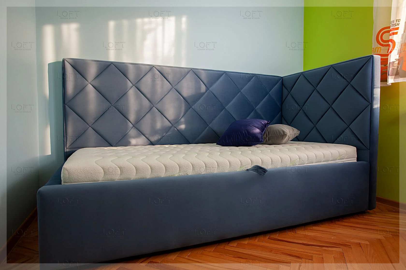 Model Santiago (wzór Paris) to niezwykle funkcjonalne narożne tapicerowane łóżko. Łóżko posiada duży pojemnik na pościel, otwierany na podnośnikach gazowych do góry, dzięki czemu zyskujemy pojemny schowek.
