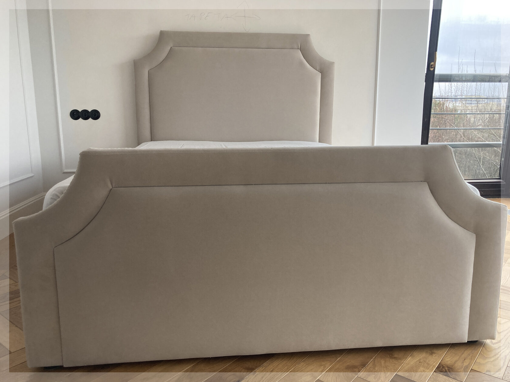 - z zagłówkiem standardowym albo ze ścianą tapicerowaną na wysokość lub szerokość pokoju
